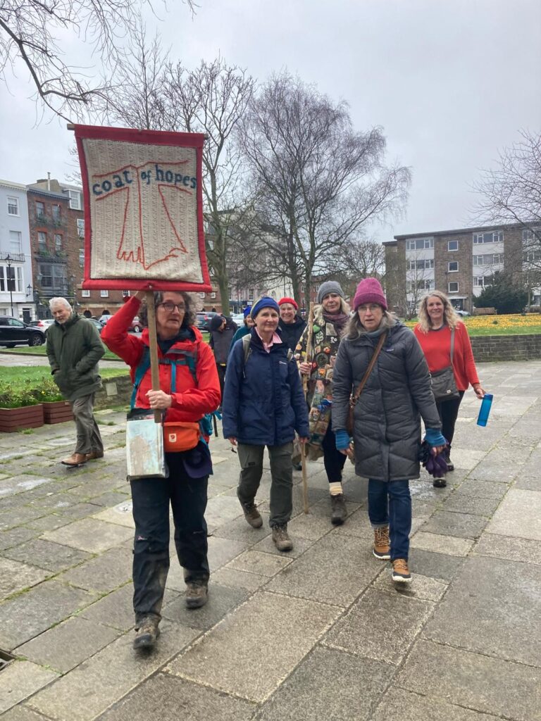 Portsmouth Climate Choir met “Coat of Hopes”, walked and sang together on way to Portsmouth Cathedral. We felt honoured to be part of their journey.
